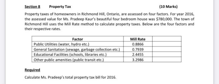 Solved Section 8 Property Tax 10 Marks Property Taxes Of Chegg Com
